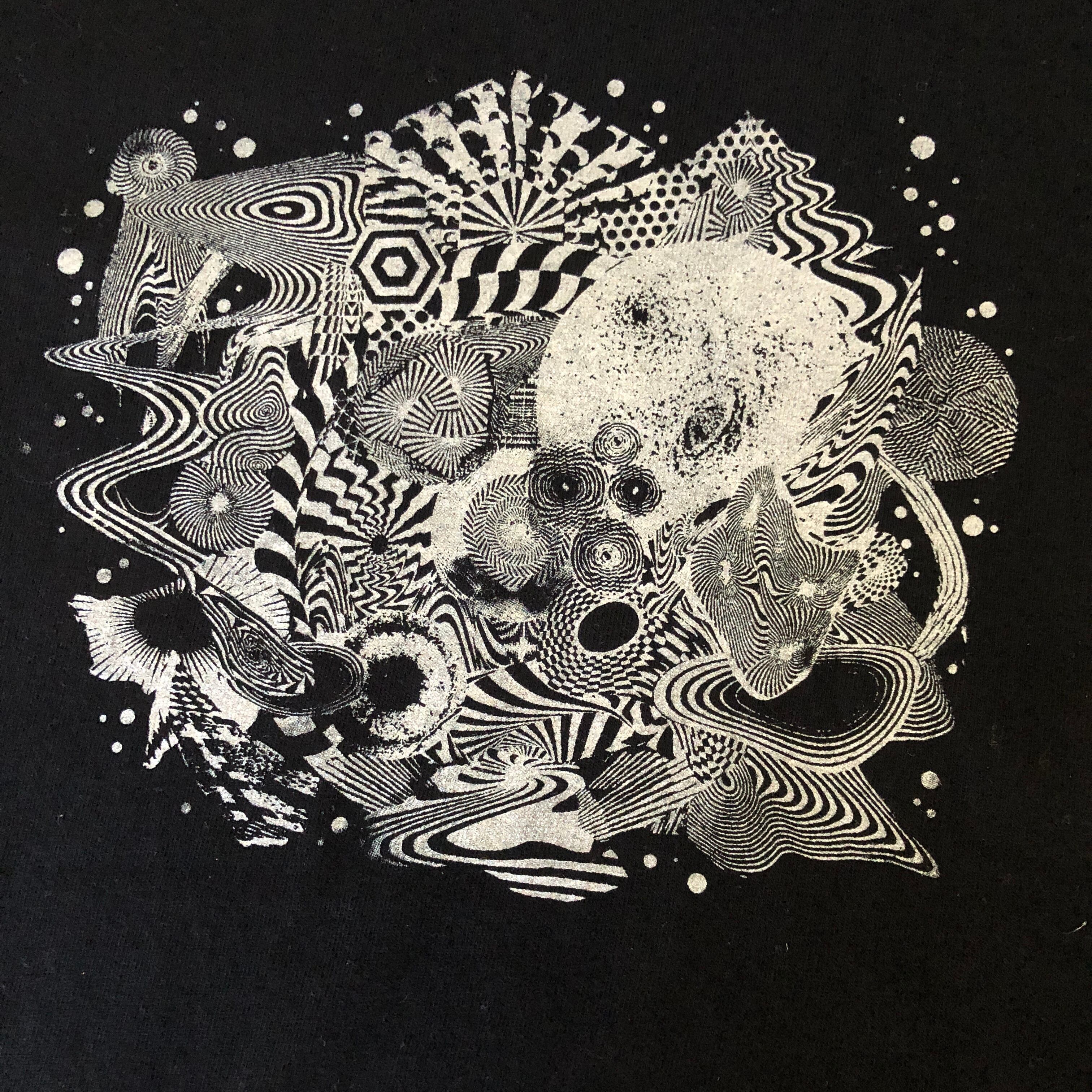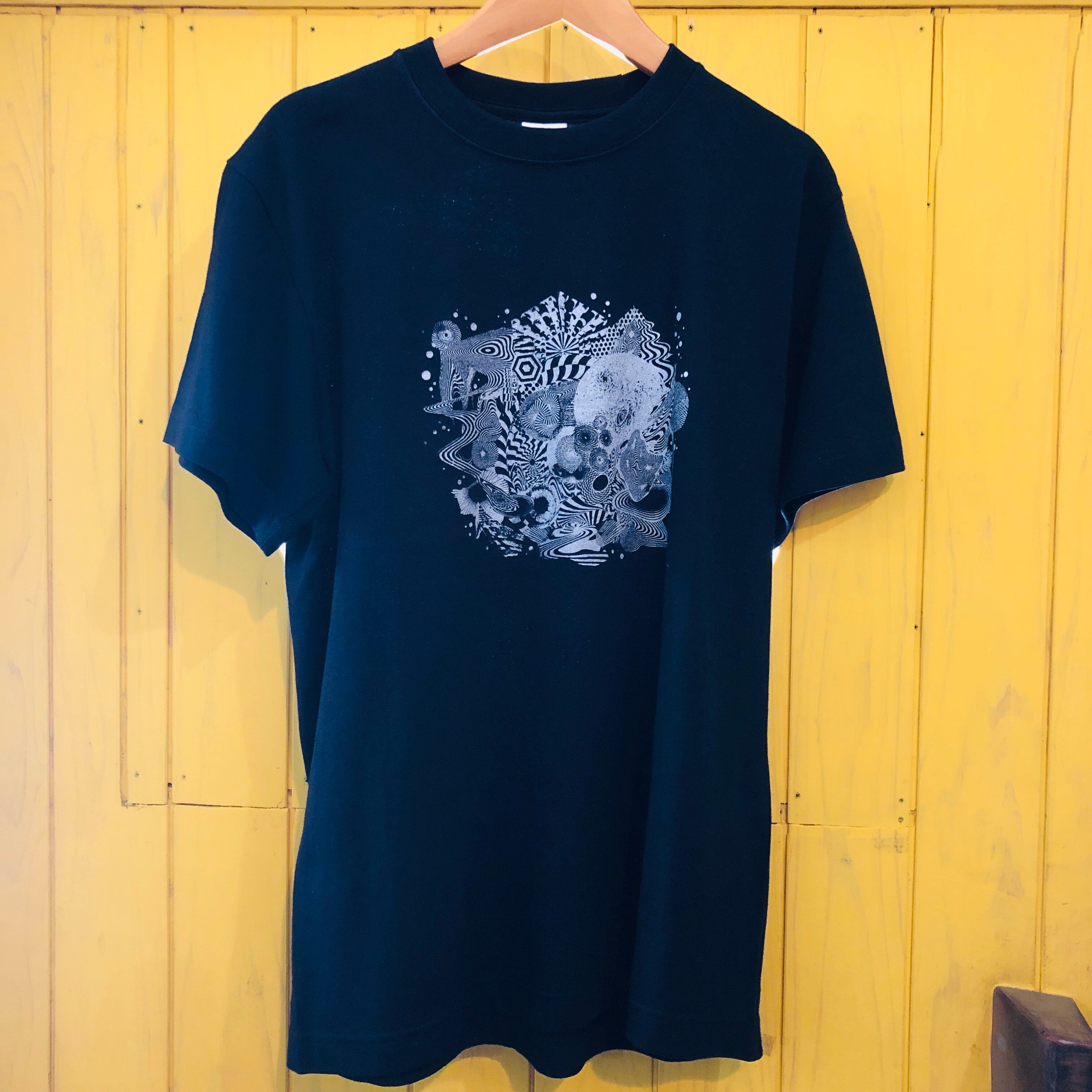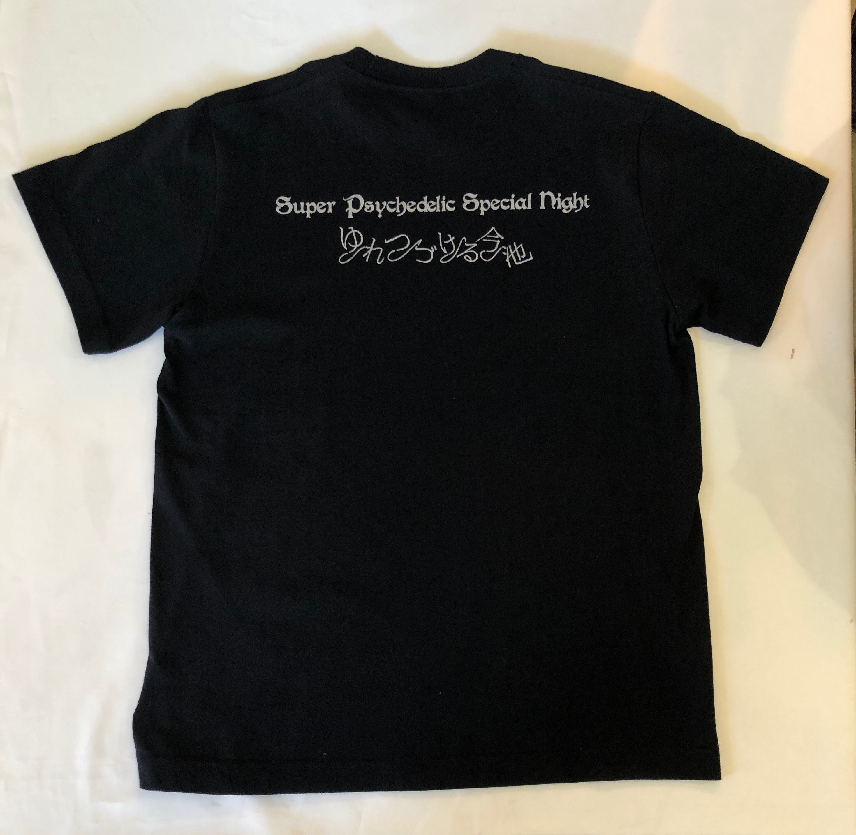 山本精一・宍戸幸司・金子ユキ 2枚組ライブアルバム「ゆれつづける今池〜Super psychedelic special night」の発売を記念してシルクスクリーンプリントで1枚づつ手刷りでプリントしたTシャツです。