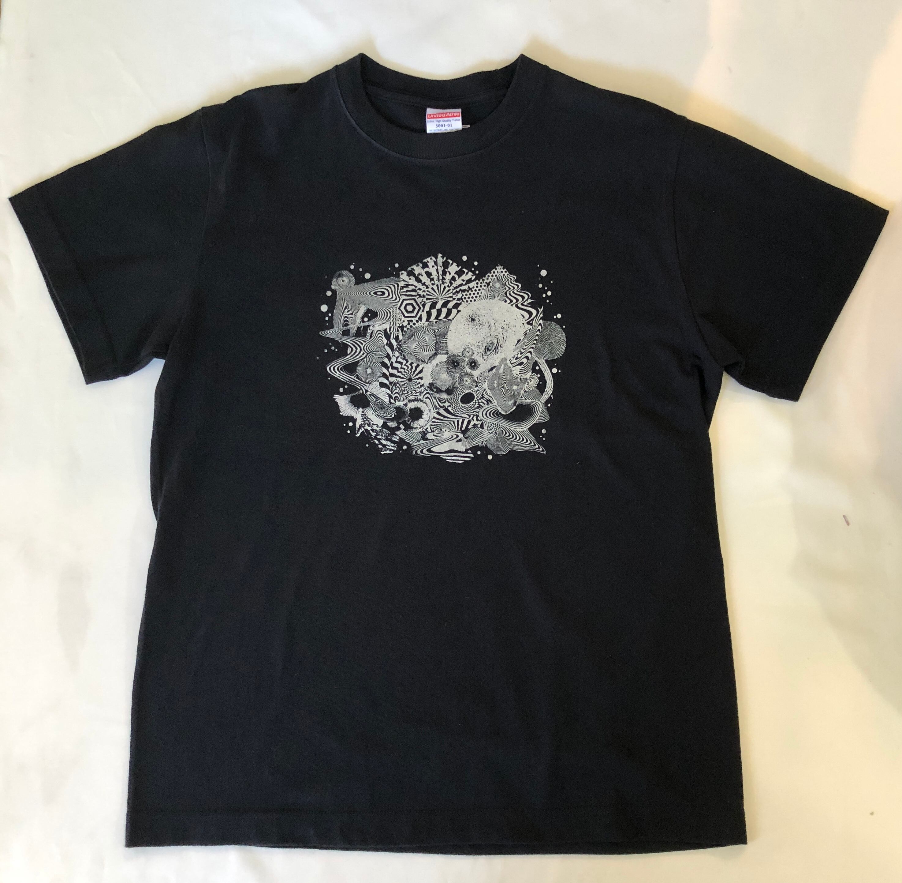 Tシャツ表面はアルバムジャケットの表のデザインをシルバーメタリックのインクでプリント。