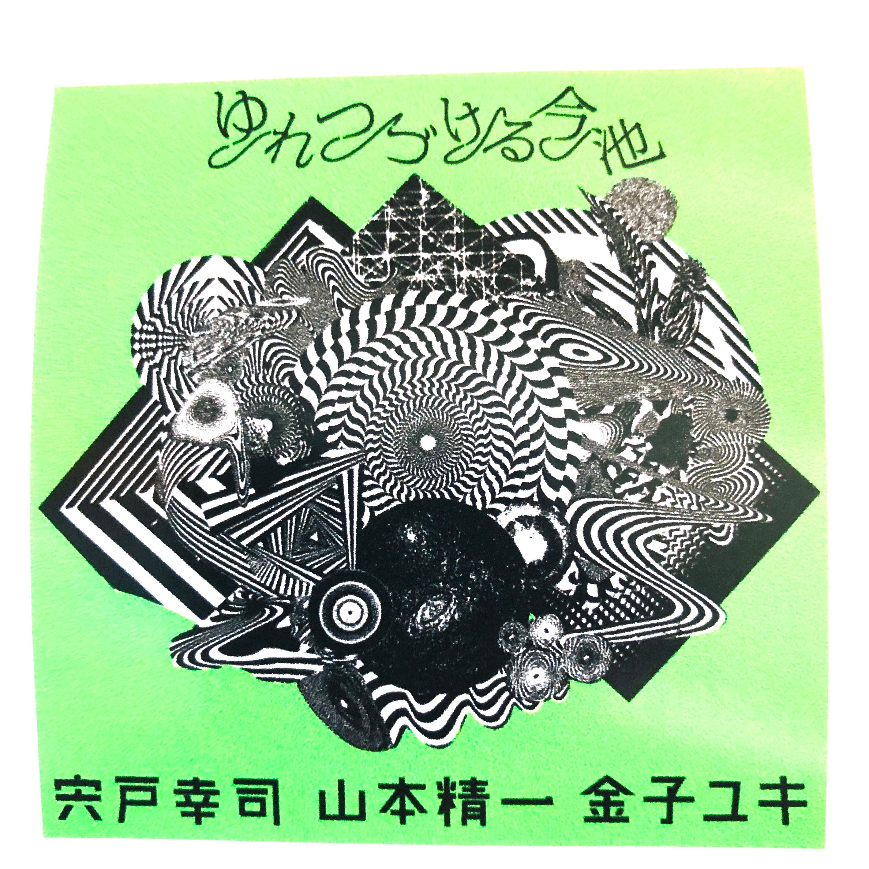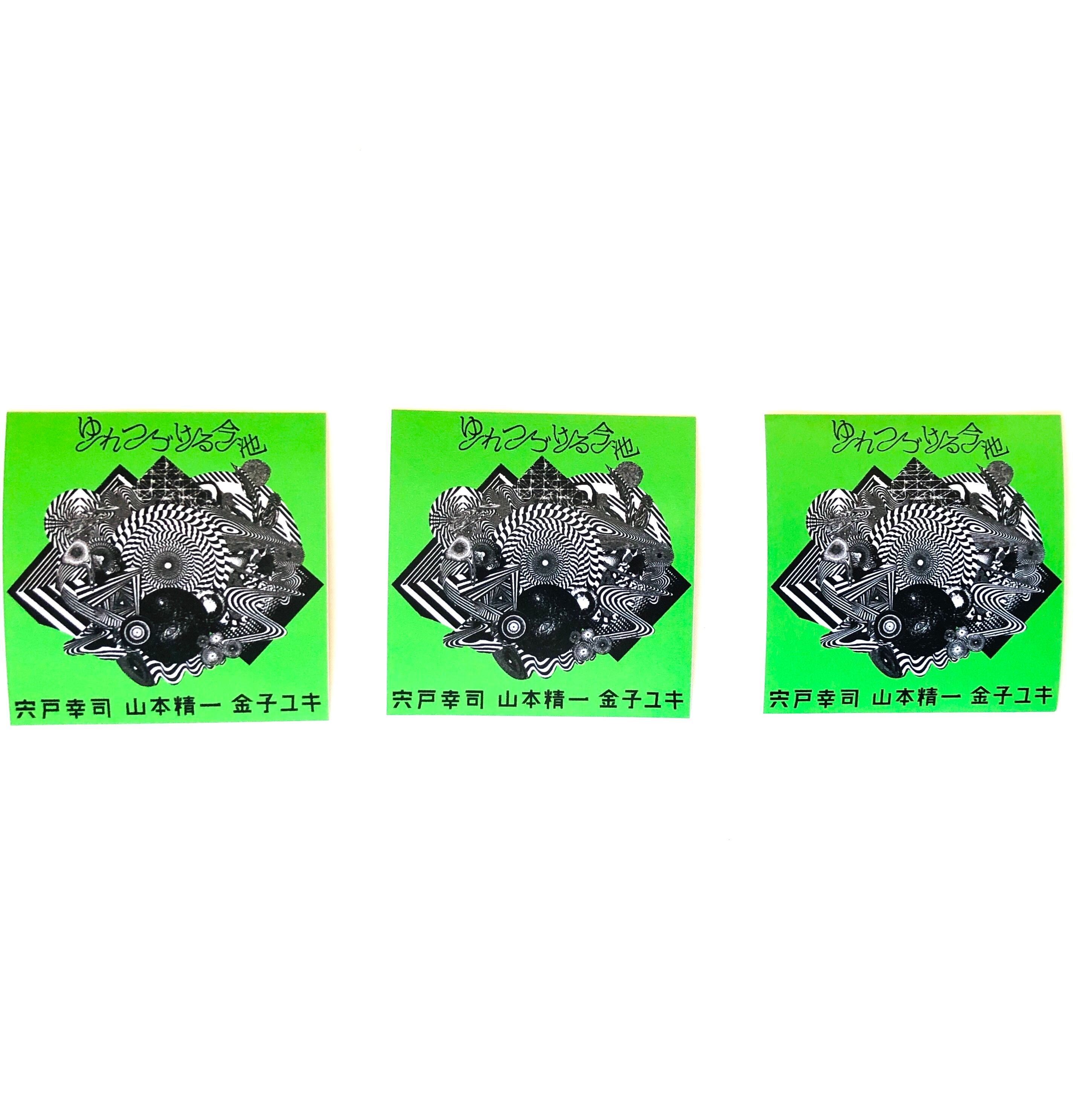 山本精一・宍戸幸司・金子ユキ 2枚組ライブアルバム「ゆれつづける今池〜Super psychedelic special night」の発売を記念して作られたステッカーです。