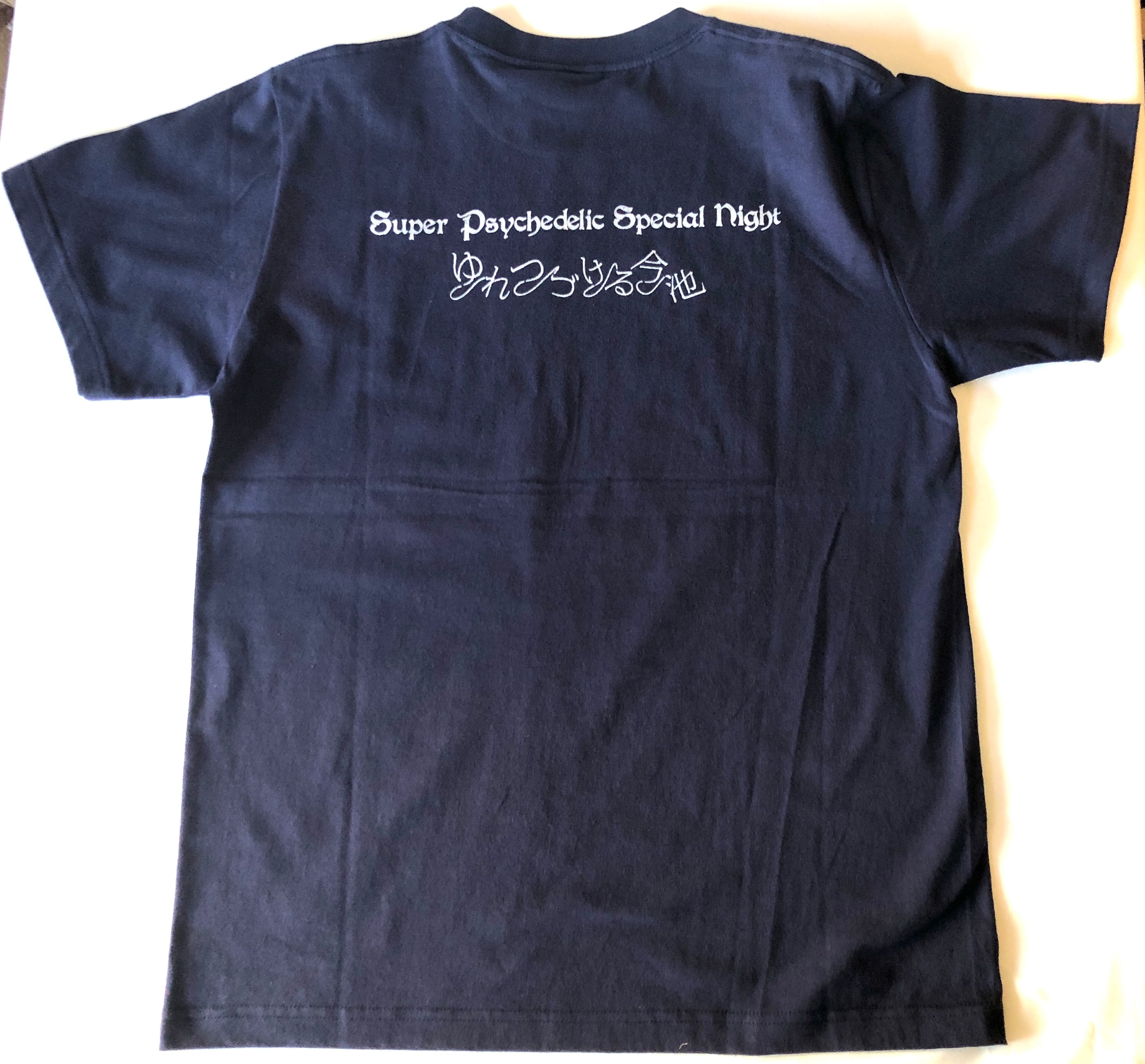 山本精一・宍戸幸司・金子ユキ 2枚組ライブアルバム「ゆれつづける今池〜Super psychedelic special night」の発売を記念してシルクスクリーンプリントで1枚づつ手刷りでプリントしたTシャツです。