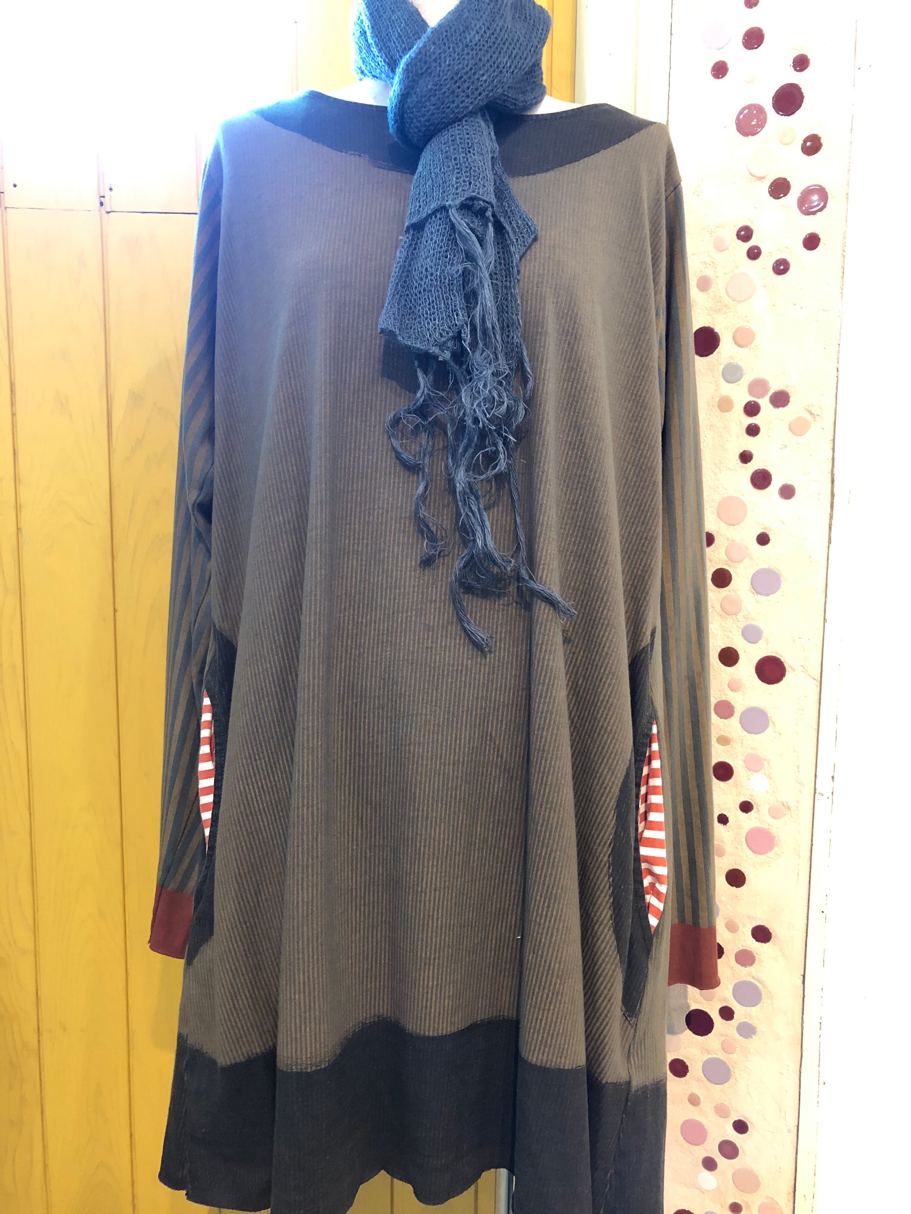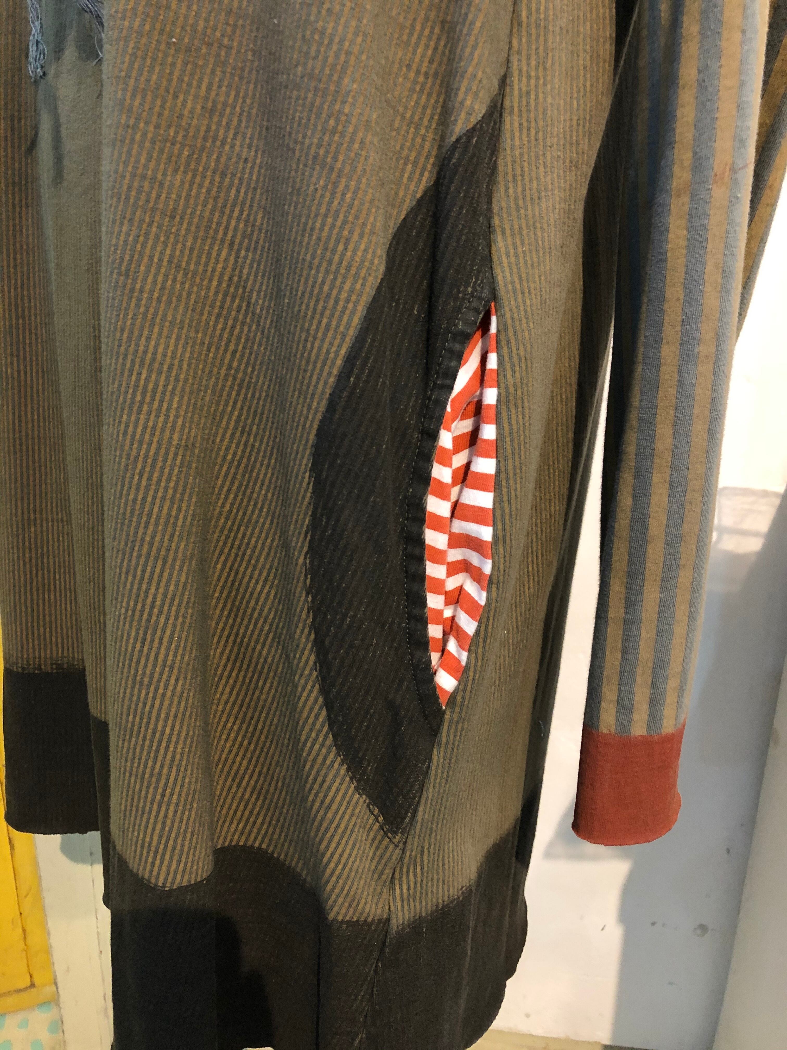SEW-UP長袖ワンピースはしっかりとした作りでポケットもついていて凝っています。