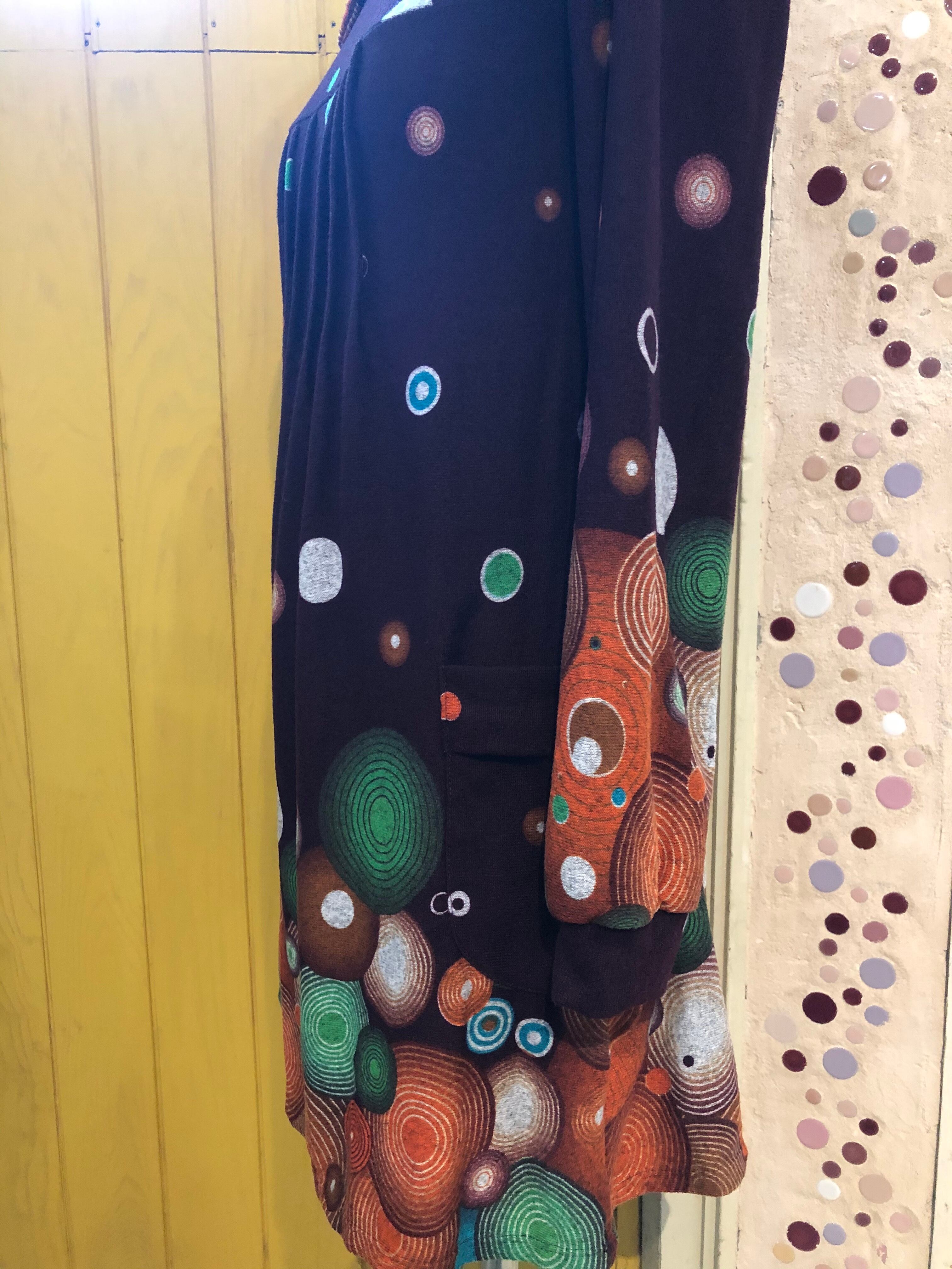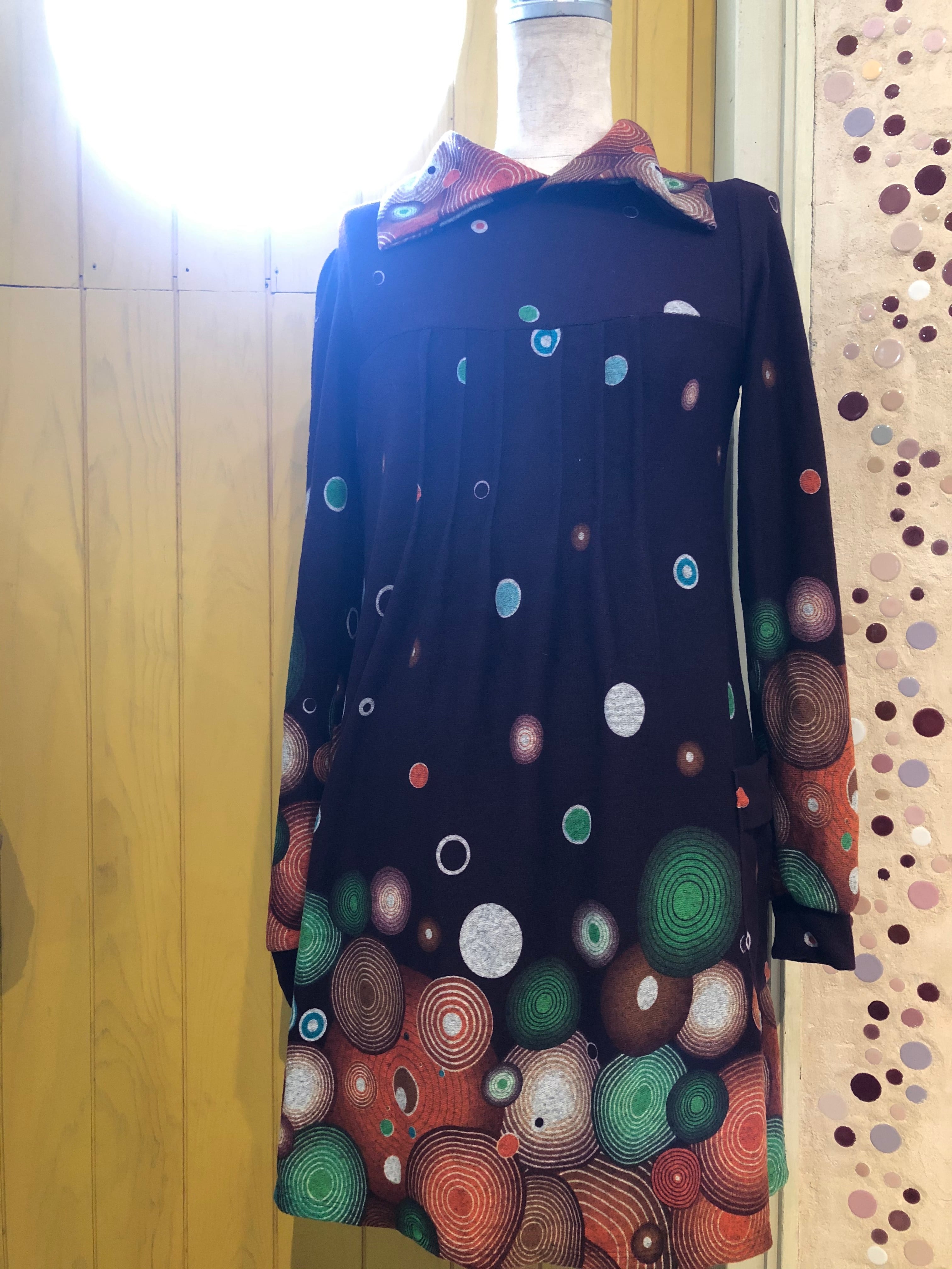厚めでやわらかい生地で作られた長袖のワンピース。