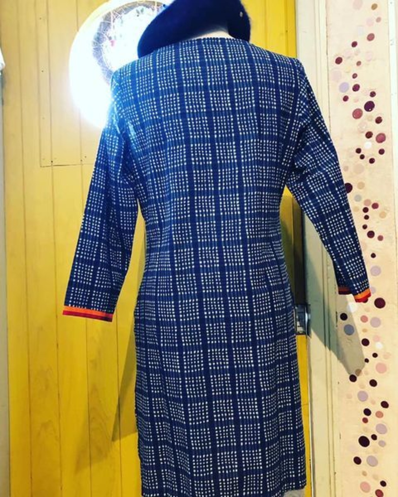 レギンスやジーンズにも合わせられるデザインで、前面と背面は柄が違います。