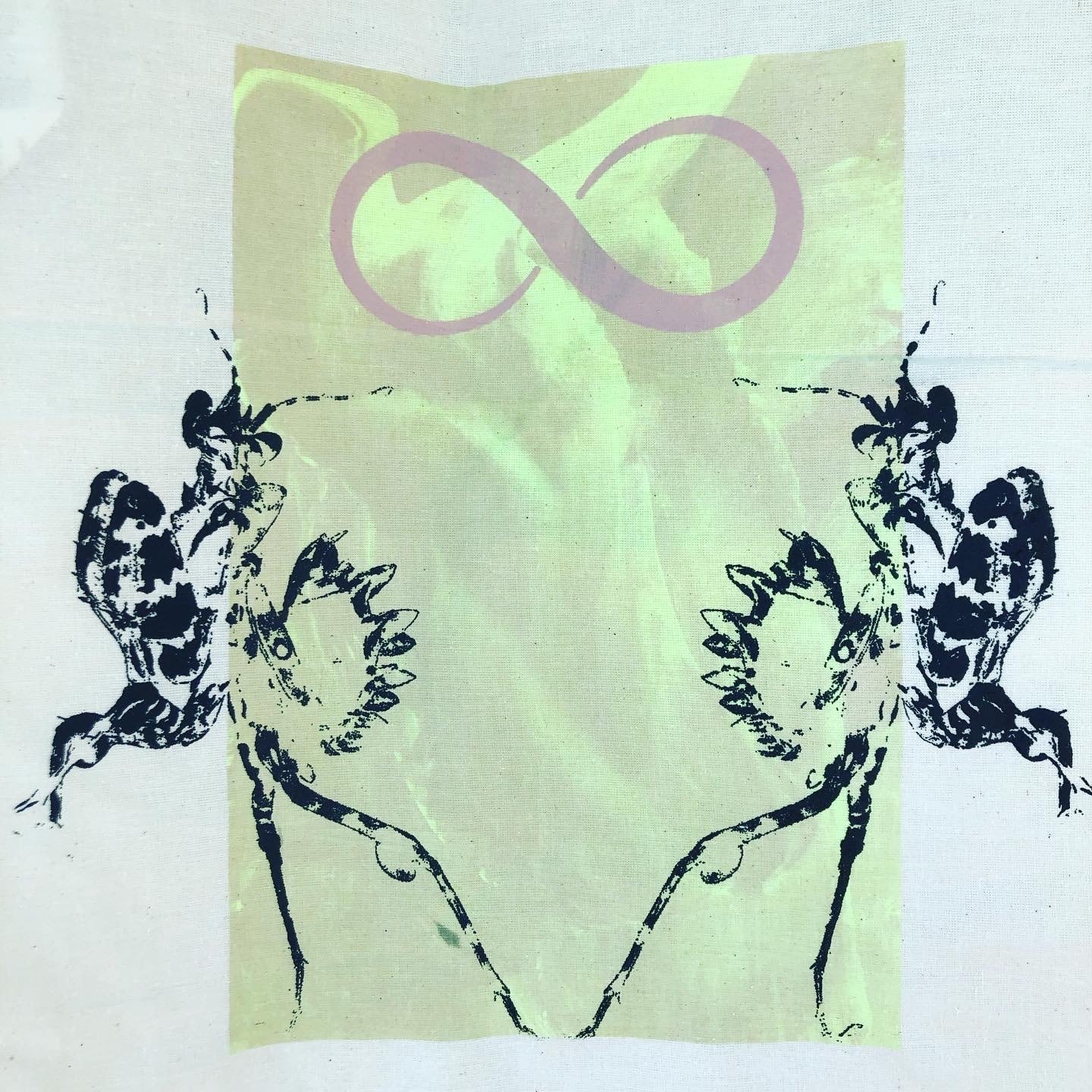 シルクスクリーンアーティストHADOUによる手刷りのトートバッグです。 ブラックライトで光ります。
