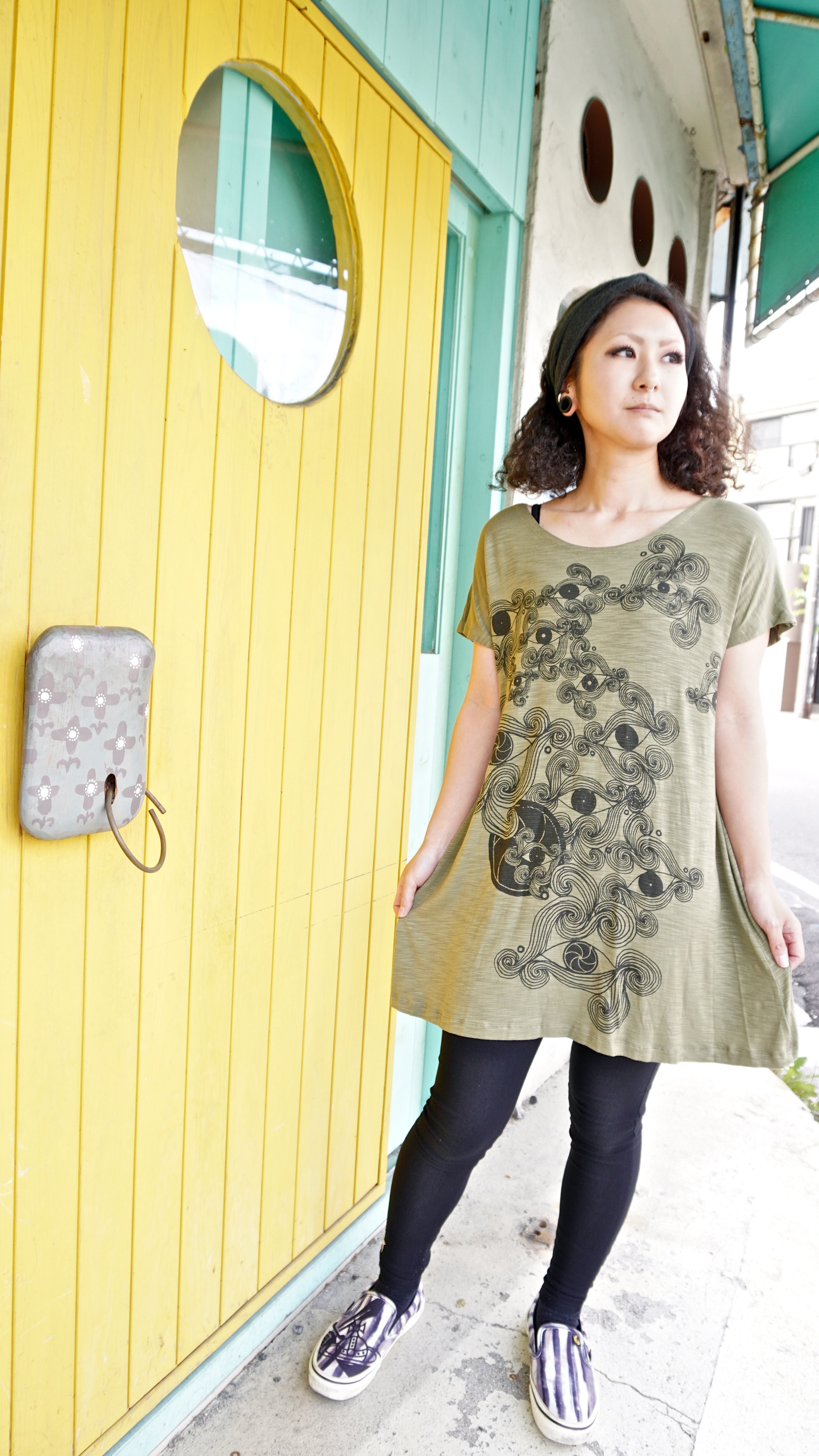 Peelの個性的なデザインのワンピースは生地が薄手で伸縮性があり着心地良い素材です。