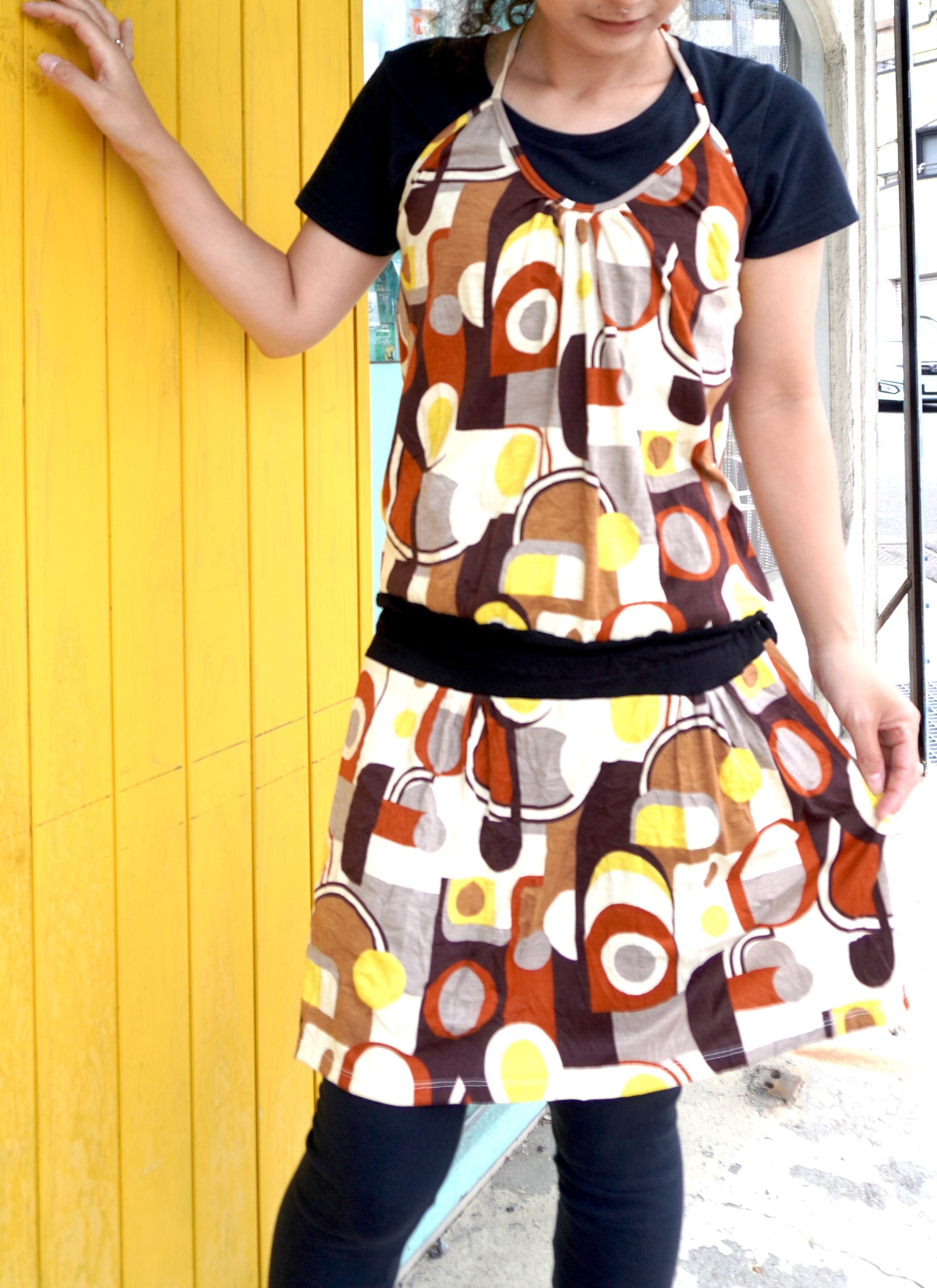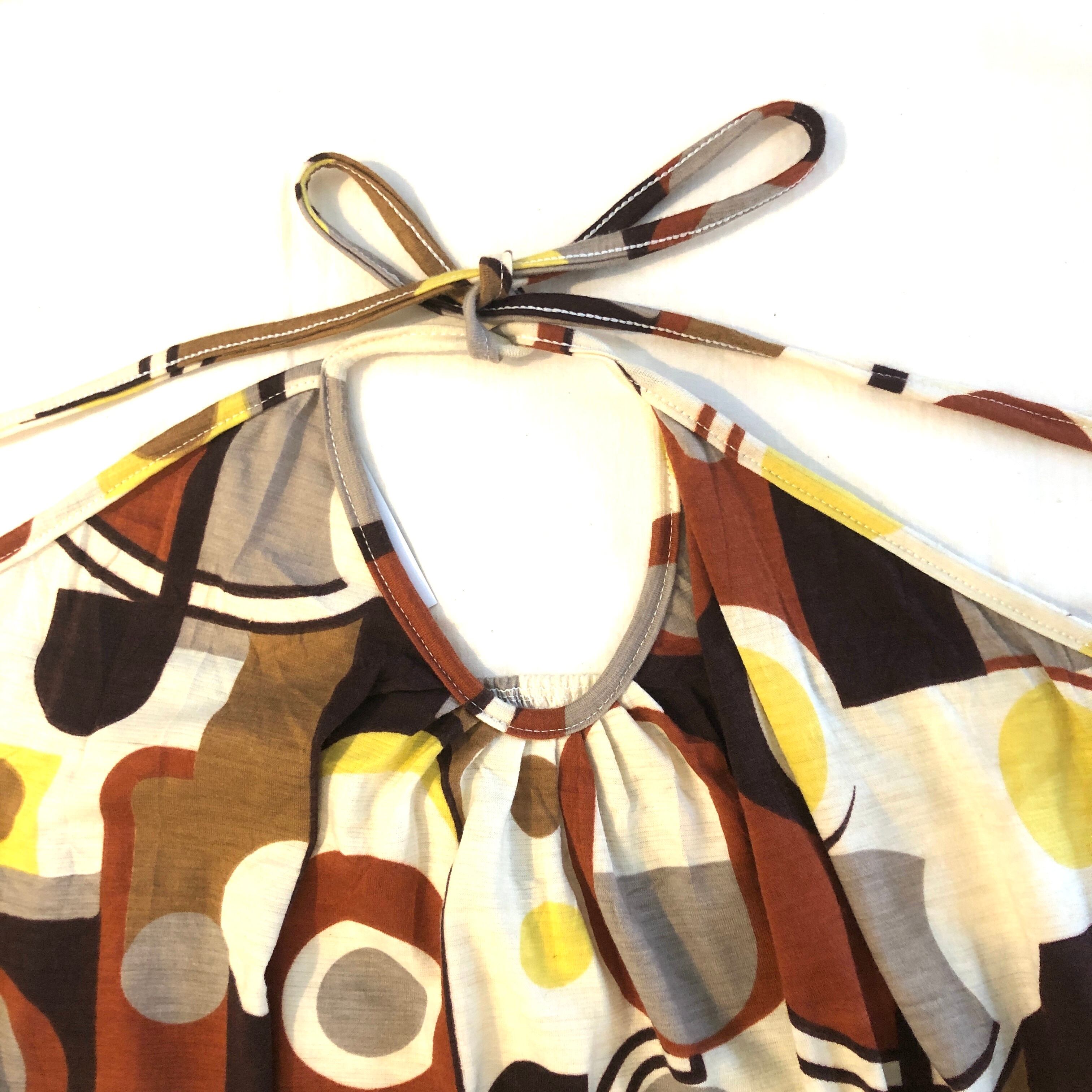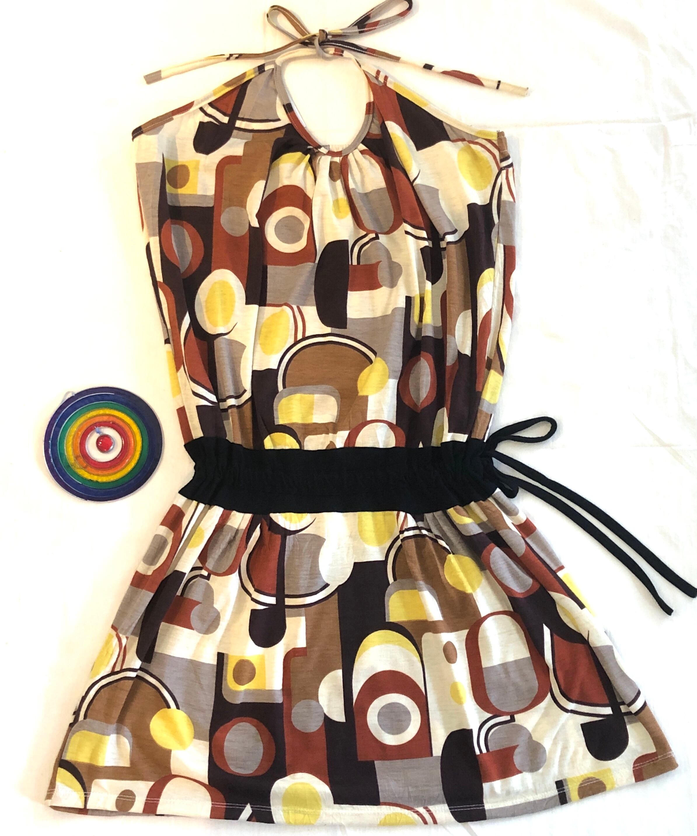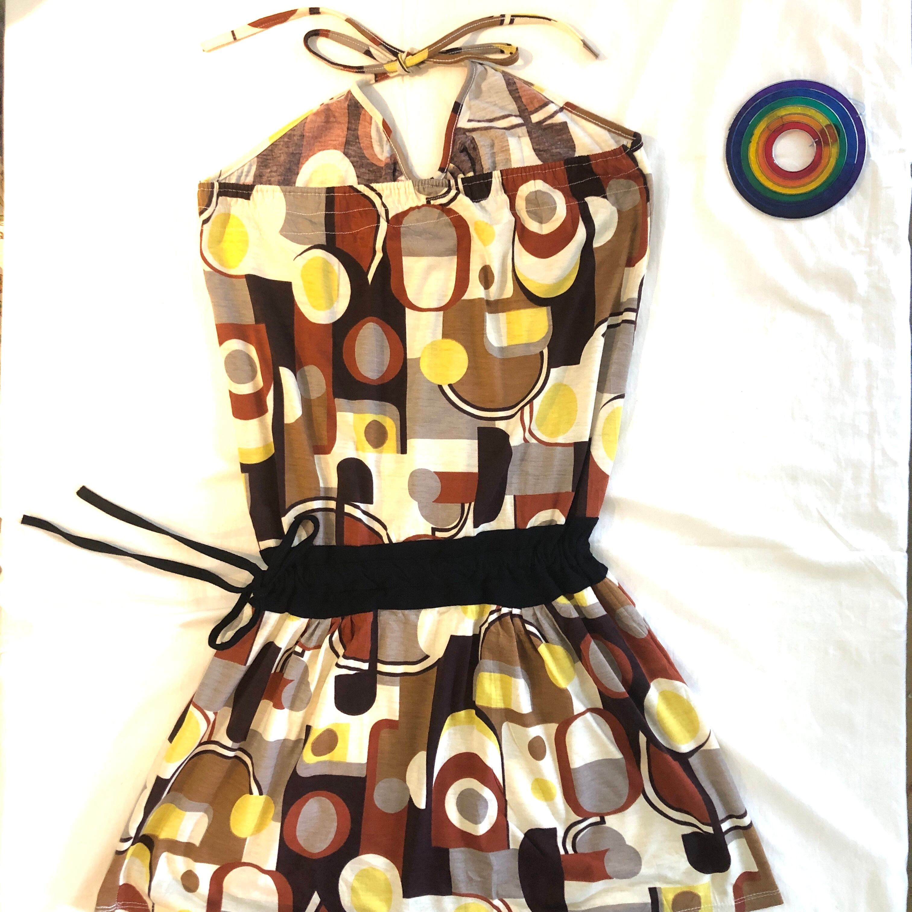 レトロ調な柄で個性的な模様のキャミソールワンピースです。